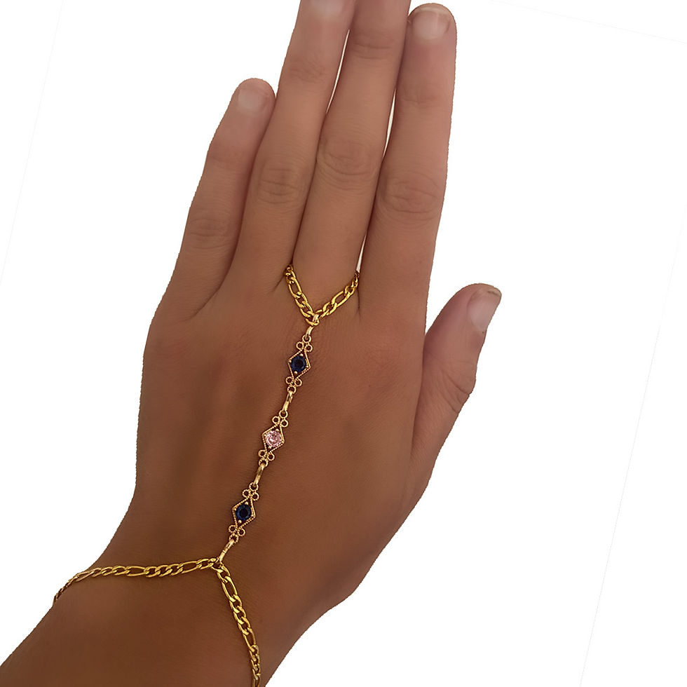 Handmade 14KT Gold Filled Natural Garnet Hand Finger Chain